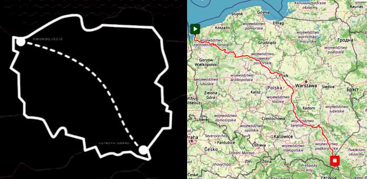 Drugą dobę jazdy kończę przejeżdżając uliczkami Opoczna. Przez ostatnie 24 godzin pokonany dystans wzrasta zaledwie o 260 km osiągając wartość 721 km.