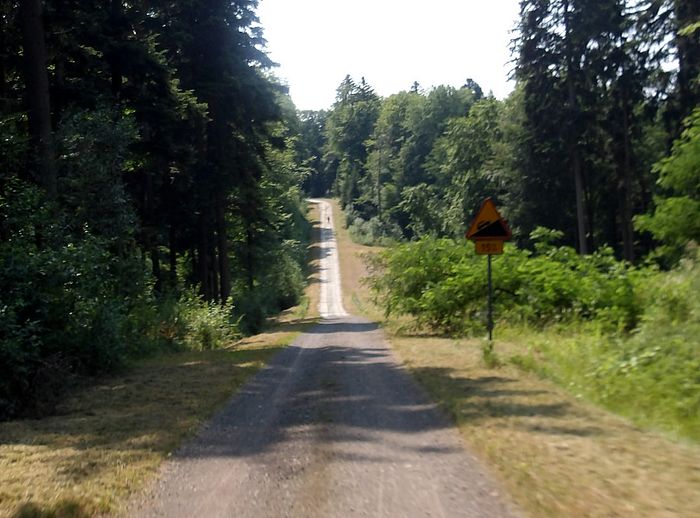 Pozostawiam z tyłu płaskie tereny Lasów Janowskich. Przede mną Roztocze. Z jednej strony zmiana na plus - pojawia się więcej dobrej jakości szutrów lub wyłożonych betonowymi płytami leśnych dróg i nowych jeszcze nie zniszczonych asfaltów. Z drugiej zmiana na minus - to tu będzie najwięcej najdłuższych (i miejscami stromych) podjazdów. Wynagrodzeniem będą równie długie zjazdy i pojawiające się na otwartych przestrzeniach rozległe malownicze widoki.