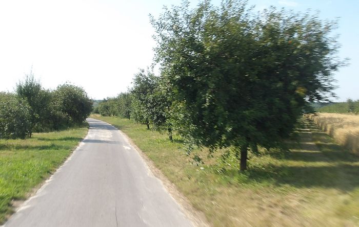 O dłuższym postoju nawet nie myślę. Chciałbym spokojnie zdążyć na jutrzejszy poranny pociąg i zameldować się w domu w niedzielne popołudnie. Pomimo upału i niezależnie od szybkości z jaką to robię, będę z uporem dążył do mety. Kryzys senny nie odpuszcza. Zatrzymuję się na 5 minut pod napotkaną na skraju wioski wiatą.