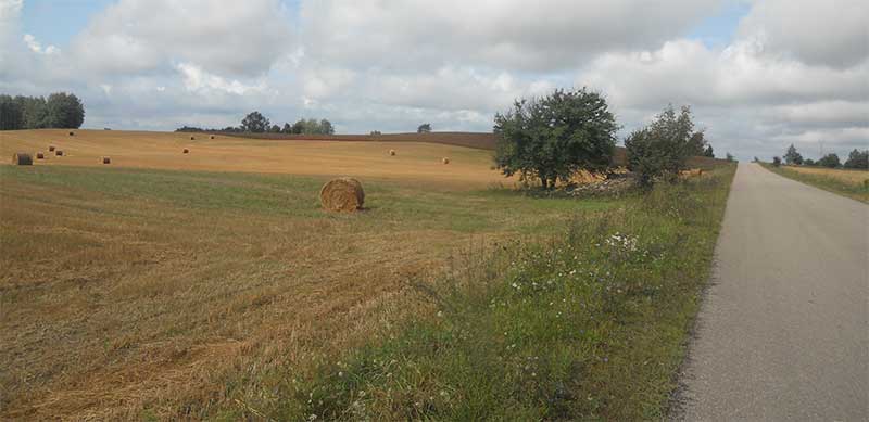 Radość z poprawy pogody trwa wyjątkowo krótko. Mijam Sejny, Giby. Powraca zachmurzenie, pojawia się nie przeszkadzająca w jeździe mżawka. Jadę przez rozległy las równą szeroką drogą prowadzącą do przejścia granicznego. Pomimo stosunkowo wczesnej pory robi się szaro, ponuro, ciemno. Deszcz wzmaga się. Rozpaczliwie rozglądam się, za jakimkolwiek schronieniem. Dopóki jestem w lesie na jakąkolwiek wiatę nie mam co liczyć. Wreszcie miejscowość Macharce, ślad skręca z głównej drogi. Mam szczęście, mimo tego, że w dalszym ciągu otacza mnie las, na leśnej polance w środku lasu pojawia się upragniona wiata.