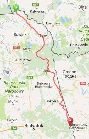 Wkrótce za mną dociera, mijany chwilę wcześniej na asfaltowej drodze, patrol Straży Granicznej. Zdają pewnie standardowe pytania: czy przekroczyłem granicę?, czy zamierzam przekraczać granicę? [Niby po co jeżeli za kilka lat standardy białoruskie mogą obowiązywać i po naszej stronie granicy]. Tłumaczę co w tym miejscu robię, wspominam o maratonie w którym biorę udział. Skoro to impreza zorganizowana to powinna być zgłoszona Straży. Przecież nie ja jestem organizatorem. Zresztą jakie ma to teraz znaczenie jeżeli większość uczestników przejechała tędy kilkanaście godzin wcześniej. Kończy się na wylegitymowaniu, sprawdzeniu w komputerze i spisaniu. Mogę jechać dalej.