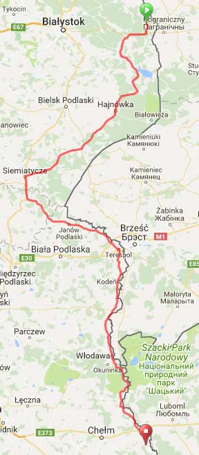 Jazda po niemal płaskich nadgranicznych terenach Podlasia nie pozostawia wspomnień. 3 dobę jazdy kończę na wysokości Chełma. Dorobek ostatnich 24 godzin to ok. 340 km w 16 godzin jazdy.