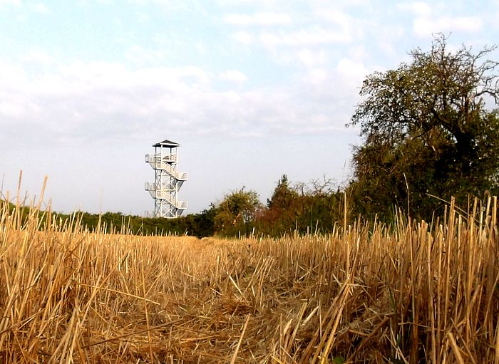 Droga wzdłuż wałów w kierunku Jeziorska i komary (pojedyncze na szczęście) pojawiające się w momencie kiedy się zatrzymuję, nie zachęcają do szukania noclegu w tym miejscu. Myślami jestem już przy znajdującej się kilkanaście kilometrów dalej wieży widokowej na skarpie nad Jeziorskiem w miejscowości Glinnik. Wypycham rower drogą prowadzącą do wieży. Rozglądam się. Kuszący wydaje się nocleg na górnej platformie ale już sama myśl o wchodzeniu tam nawet bez roweru jest zniechęcająca. Płaska łączka pod wieżą wydaje się za bardzo eksponowana na widok potencjalnych gości.