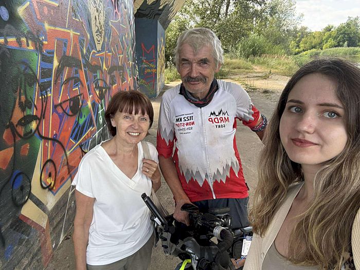 Wreszcie jest - most Przemysła I na ul. Hetmańskiej. [559 km - godz. 15:43-15:54]. Moje oczekiwania związane z dotarciem w to miejsce pieszo było mocno niedoszacowane. Przejazd rowerem od momentu wymiany dętki zajął mi prawie 3 godziny. Prowadząc rower dotarłbym tu grubo po północy, a może nad ranem. Zjeżdżam pod most. Przez dłuższy czas rozglądam się widząc pustkę, bezludzie. No i gdzie są spodziewani kibice (rodzina). Po chwili jest już nadmiar - kumulacja. Z wysokiego podestu podtrzymującego kolumnę mostu pozdrawia mnie gość ubrany w kolarskie ciuchy. W półmroku nie rozpoznaje twarzy. Nie zdążę nawet z nim przez chwilę porozmawiać czy rozpoznać kto zacz, gdy od przeciwnej strony słyszę głosy córki i żony. Czuję się nieco rozdarty. Z kim powinienem porozmawiać wcześniej?