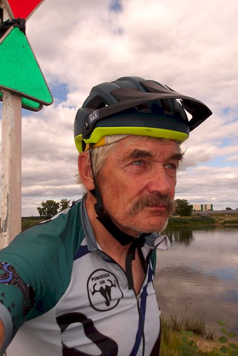 Zdobywam Kostrzyn, Jeszcze tylko plac budowy nowego mostu i upiorna przeprawa starym oblężonym przez samochody mostem na drugą stronę Warty. Kilka kilometrów przez łąki doprowadza mnie do najdalej wysuniętego cypelka, w miejsce gdzie Odra wpada do Warty (lub odwrotnie). Nadzieja na koczującego w tym miejscu fotografa jest płonna. Sam potwierdzam pobyt w tym miejscu robiąc selfi. Powrotny przejazd przez wspomniany most i czujny dojazd do mety przez leżący nad brzegiem Warty Kostrzyn. Wynik nie jest satysfakcjonujący ale i tak czas poprzedniego przejazdu poprawiam o ponad 2 godziny.
