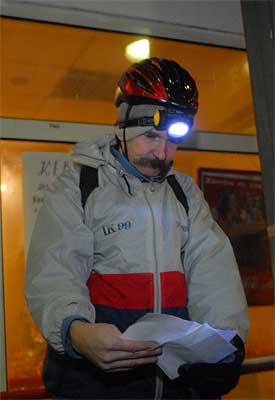Przedłużające się oczekiwanie na start sprawia, że zaczynamy marznąć (później będzie już tylko zbyt gorąco). Wreszcie wszyscy są, możemy otworzyć trzymane od dłuższego czasu w rękach koperty i przeczytać Manifest, tzn. opis punktów i czynności które trzeba wykonać by zaliczyć całą trasę. Dreszczyk emocji, szybko przebiegam wzrokiem opis miejsc, które trzeba będzie odwiedzić. Podstawowa trudność to nie tylko identyfikacja ich położenia ale błyskawiczne określenie optymalnej kolejności ich zaliczania. Prawdziwy scorelauf, prawdziwa masakra. Tu nie wystarcza znajomość miasta (nawet od 50 lat) tu potrzeba wyobraźni. Jak ocenić (bez mapki - na studiowanie planu miasta szkoda czasu), jaka kolejność zaliczania jest najlepsza? To wyzwanie dla tych, którzy znają miasto praktycznie - kurierów rowerowych. Jest ich tu większość.