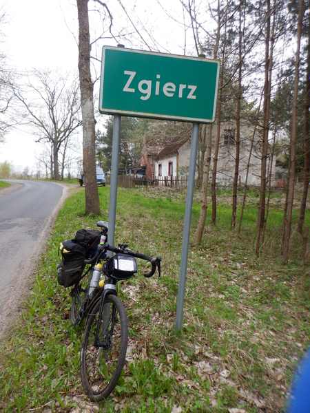 Pomimo opuszczenia łąk, drogi niewiele się poprawiają. Jadę chyba nigdy nie równaną drogą przez wioski na skraju (a może na terenie) Słowińskiego Parku. Moją uwagę zwraca wioska Zgierz. To druga miejscowość o tej nazwie. Do podłódzkiego Zgierza mam zaledwie 15-20 km. Żeby tutaj dojechać musiałem pokonać prawie 300 km. Fotkę robię już w tej bardziej cywilizowanej "asfaltowej" części miejscowości.