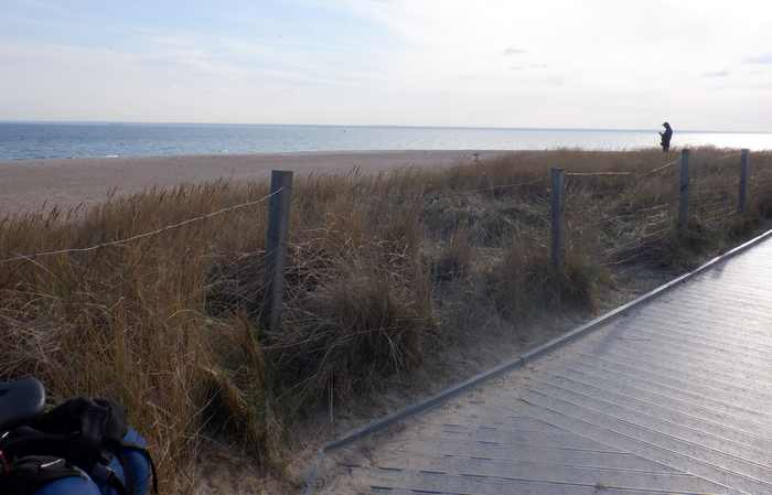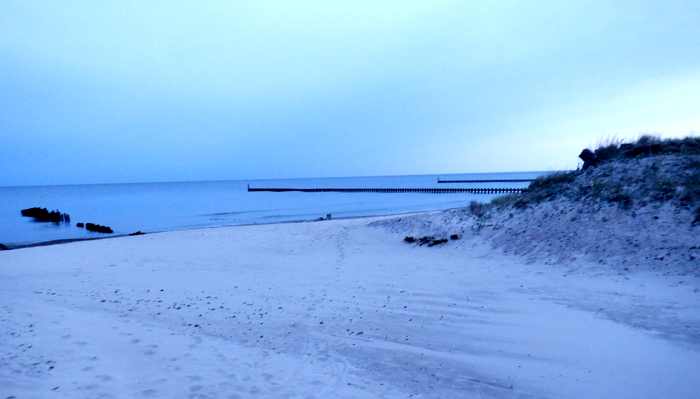 Nie wiem, że najlepsze dopiero przede mną. Mijam kolejną miejscowość. Studiując przed startem trasę zauważyłem, że za chwilę zjadę na plażę. Jest godzina 2:07 od startu spod latarni w Świnoujściu minęło 7h 40 min. W ciągu 7h 29 min. (czas postoju to 11 minut) pokonałem 165 km ze średnią 22,0 km/godz.