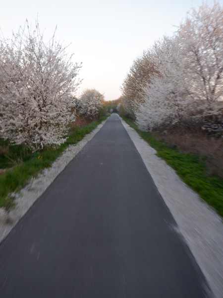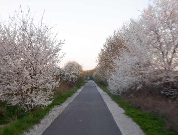 Kilka kilometrów otaczającego drogę lasu i pojawia się cywilizacja. Na początek miejscowość Dąbki. Kolejne miejscowości, asfaltowe drogi, uliczki i ścieżki. Nic tylko jechać. No to jadę. Zastanawiam się kiedy nadejdzie poranny senny kryzys. Czy będę musiał zatrzymać się i na kilka chwil zdrzemnąć oparty o rower? Może wystarczy zabrana ze sobą na taką okoliczność kawa. Kryzys nie nadchodzi. Jadę dalej nie zatrzymując się.