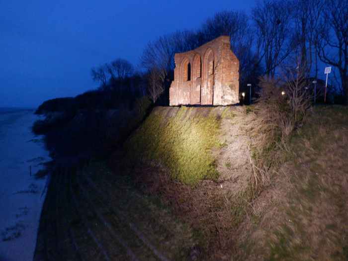 Promenada w Trzęsaczu prowadzi prosto na skraj morza do największej atrakcji w tej miejscowości. Taras widokowy pozwala od strony morza obejrzeć najbardziej znany symbol upadku polskiego kościoła. Z dawnego XV wiecznego kościółka pozostała pojedyncza ściana. Olbrzymie środki idą na to by ochronić kościół przed ostatecznym upadkiem.