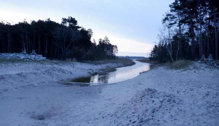 Planować to sobie można. Do wschodniego skraju polskiej części mierzei docieram już po zmroku. Marzyłem o zrobieniu fotki obok słupka granicznego ale dostępna dla turystów część przegrodzona jest zwykłą metalową siatką i zwykłym szlabanem. Jest jeszcze tablica z informacjami dla turystów ale to nie jest najlepszy czas by zapoznać się z jego treścią.