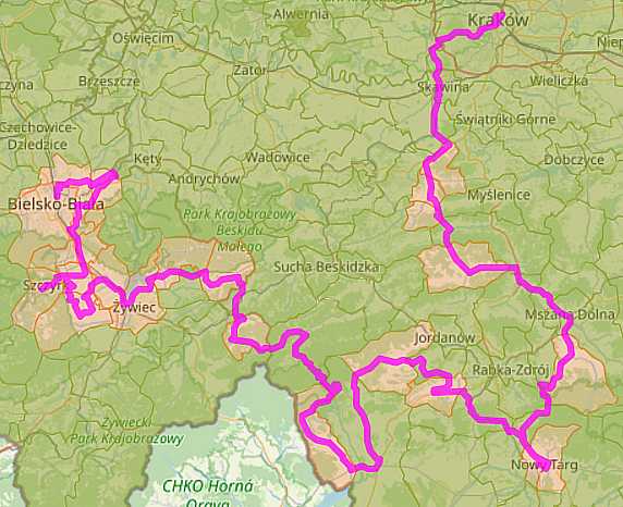 Powoli wpadają kolejne gminy Lipowa, Łodygowice, Żywiec, Łękawica, Ślemień. Pomimo, że jeszcze właściwe podjazdy jeszcze się nie zaczęły już czuję je w nogach. Pozytyw - po przejechaniu zaledwie 90 kilometrów zaliczyłem 10 gmin. By wykreślić z listy braków kolejnych 8 będę musiał przejechać 240 km i pokonać większość najwyższych wzniesień.
