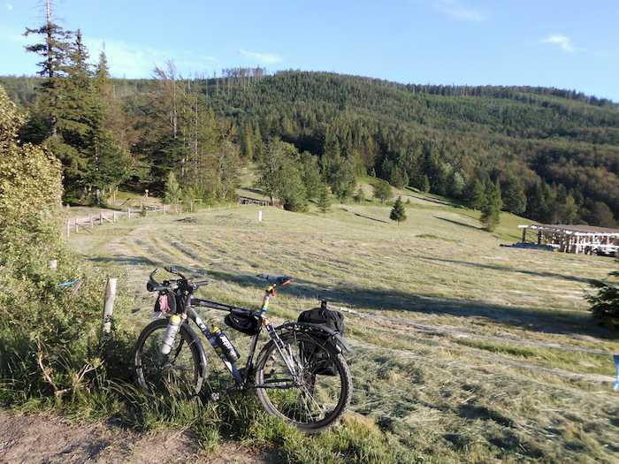 Z zakopianki skręcam w kierunku Obidowej. Wraz z asfaltem kończy się dla mnie możliwość jazdy. Wpycham rower w kierunku grzbietu Gorców. Dlaczego tak? By możliwie w dużym stopniu zaliczyć znajdującą się po drugiej stronie gminę Niedźwiedź. Mijam zamknięte schronisko Stare Wierchy i zagłębiam się w porastające grzbiety gór las. Osiągnięcie najwyższego punktu na tej przeprawie niewiele zmienia. Jest zbyt stromo, zbyt nierówno, a droga ocieka wodą. Silne światło czołówki niewiele pomaga. Czeka mnie równie długie sprowadzanie roweru. Taki trening nie zaszkodzi przed startem na trasie Carpatia Divide. Kończy się krótka lipcowa noc.