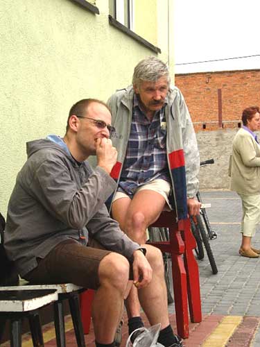 Wreszcie dojazd do cypelka na którym znajduje się PK2. Zawracam widząc zamkniętą bramę. Nie patrząc dalej na mapę zmierzam do miejsca gdzie znajdował się punkt kontrolny podczas ubiegłorocznego BikeOrient Prologu. Przedzieram się z rowerem przez morze piachu. Za mną ten sam błąd popełnia jeszcze dwóch bikerów. Kiedy docieram na koniec cypla moje zdumienie jest ogromne - tu punktu nie znajduję. Wiem to oglądając jeszcze raz dokładnie mapę. Jazda na pamięć w terenie, który wydawał się znajomy kończy moje marzenia o zajęciu przyzwoitego miejsca. Powrót przez Ośrodek Wypoczynkowy i nieco mniej piaszczysty dojazd do PK2. W obie strony mijam tłumy bikerów, zdążających z (lub do) punktu.