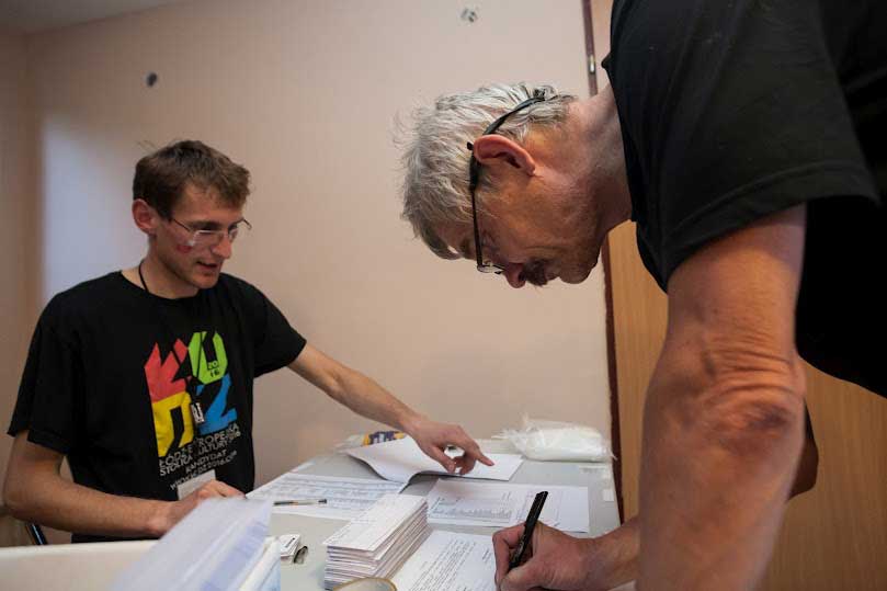 Na kolejnym punkcie już nie jest tak słodko. Umiejscowione co 50 metrów przecinki i drogi wyraźnie utrudniają wybór tej właściwej. Ratunkiem w takiej sytuacji jest korzystanie z linijki. Ta czynność na zmniejszonej do nietypowego rozmiaru 1:55.000 mapie nie wychodzi mi jednak najlepiej. Skręcam o kilkadziesiąt metrów za daleko. Dopiero razem z nadjeżdżającym Tomkiem przeczesujemy kolejne leśne drogi by trafić na tę właściwą. PK10 polanka przy drodze.