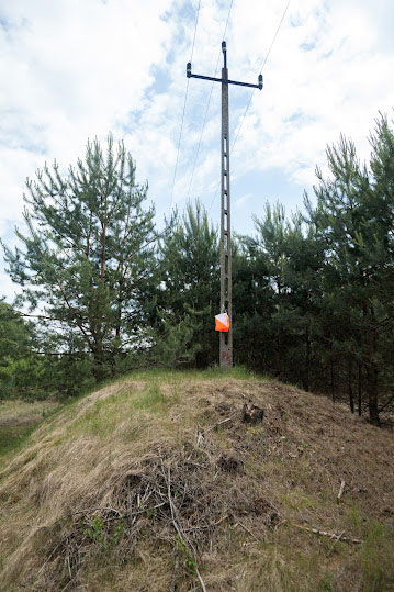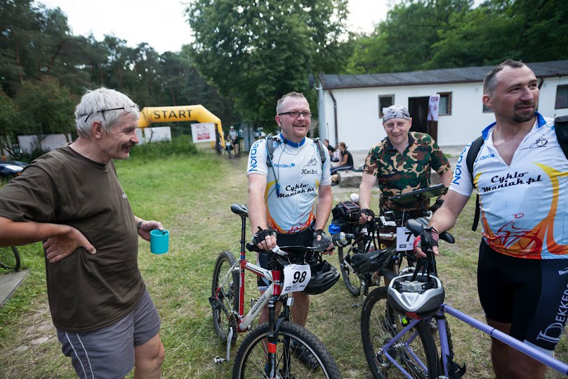 Nieco zdziwiony doganiam Tomka, który pojechał krótszą drogą. Gdzieś w oddali po raz ostatni miga mi koszulka Adama, który wybierze inną kolejność zaliczania punktów. Z Tomkiem ze zmiennym szczęściem rywalizujemy przez znaczną część trasy. Kolejne punkty zaliczamy w tej samej kolejności. Wybieramy własne (raz lepsze raz gorsze) warianty przejazdu pomiędzy punktami. Ja nieco szybciej pokonuję szutrowe drogi, Tomek wyraźnie lepiej radzi sobie z namierzaniem punktów kontrolnych. Chwila rozmowy z Tomkiem sprawia, że nie kontrolujemy odległości. W ostatniej chwili odwracam głowę do tyłu, dostrzegam zamaskowaną rosnącymi wzdłuż drogi drzewami, śródleśną polanę. W oddali widać ambonę i kilku bikerów zdążających na (i z) punktu PK17 - ambona.