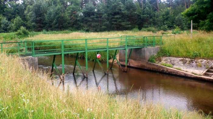 Powrót z górującego się nad okolicą wzniesienia to przyjemność. Wreszcie mogę wsiąść na rower a siła ciężkości sprawia, że bez żadnego wysiłku z mojej strony zjeżdżam w dół. Mój organizm, mój umysł zaaprobował już nietypowy sposób poruszania się i zaliczania punktów. Ponieważ po zaliczeniu najbliższego punktu i tak będę wracał tą samą drogą, rower pozostawiam w krzakach na skraju łąk, a na poszukiwania punktu ruszam bez niepotrzebnego balastu. Kilkaset metrów wzdłuż rzeki doprowadza mnie do widocznych z oddali kładek i zwisającego z jednej z nich lampionu. Wracając trochę na skróty, w pewnej odległości od rzeki muszę pokonywać pojawiające się łany pokrzyw i jeżyn. PK5 - kładka - 14:30.