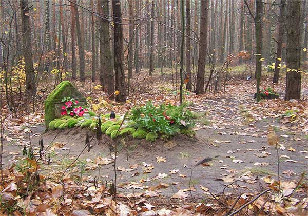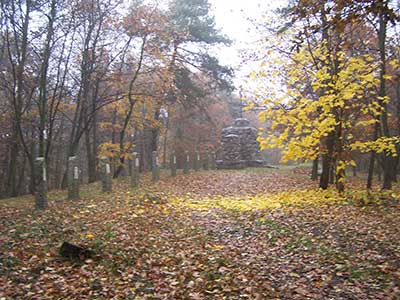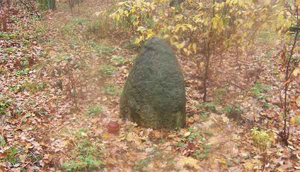 Kilka kilometrów dalej na ukrytym w środku lasu wzgórzu odnajduje jedną nagrobną płytę.
