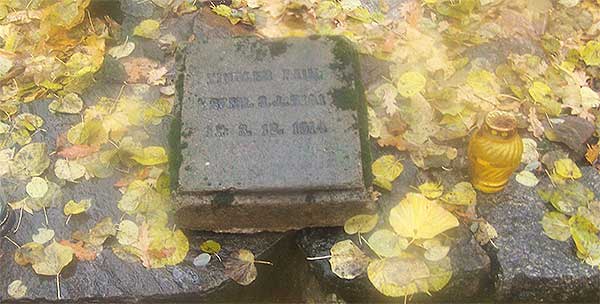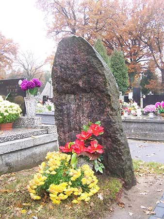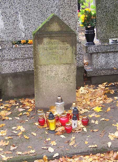 Na prawo od skrzyżowania cmentarnych alei odnajduję odwrócony "plecami" wysoki głaz upamiętniający niemieckiego oficera.