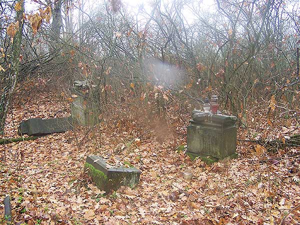 Na niewielkim cmentarzu ewangelickim odnajduję 5 wysokich nagrobków.
