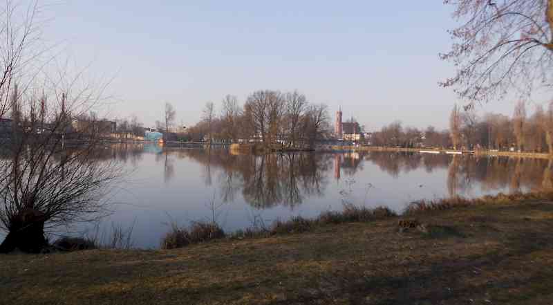 Gdzieś z boku pozostawiam Skierniewice. Przede mną nudna asfaltowa droga na południe. Z niepokoję obserwuję słońce obniżające swoje położenie. Brak mapy sprawia, że nawet nie wiem ile będzie trwał dojazd do kolejnej miejscowości Rawa Mazowiecka. Rawka przeplywa tu przez tu przez szereg wykorzystywanych rekreacyjnie stawów.