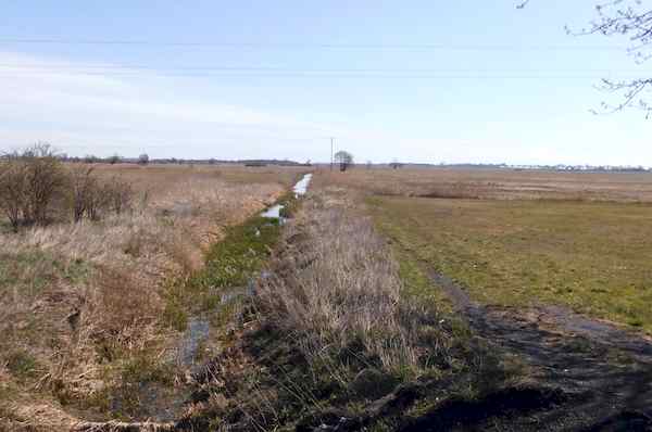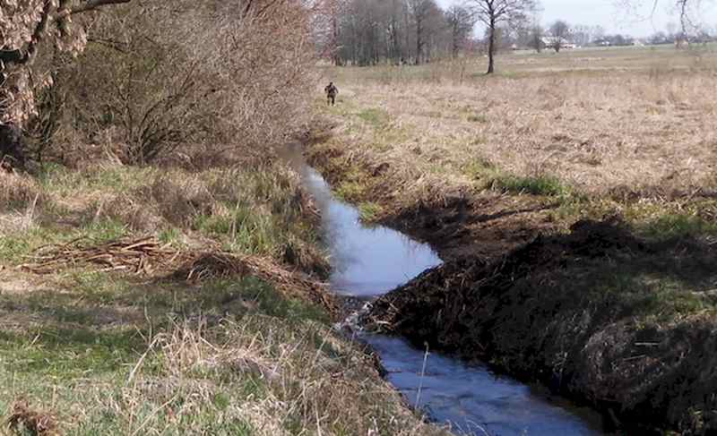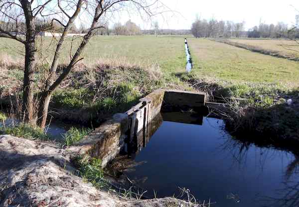 Oczyszczalnię mijam jadąc po przeciwnej, porośniętej lasem i bardziej kameralnej stronie rzeki. Omijam jej charakterystyczne budynki, a jednocześnie unikam przejazdu przez miasto Konstantynów. Dalej Ner płynie już szeroką pradoliną. Niegdyś jej bagniste dno zostało uregulowane. Wyprostowana, puszczona pomiędzy wałami rzeka, otoczona jest przez szeroki pas nawadnianych pól. Zbudowany przez zaborcę system, obejmuje rozmieszczone co kilka, kilkanaście kilometrów spiętrzające wodę śluzy. Kilkadziesiąt kilometrów różnej wielkości krzyżujących się na różnych poziomach kanałów, kanalików, rowów czy niewidocznych w bujnej trawie zagłębień doprowadzają wodę do najodleglejszych fragmentów łąk. Liczące ponad 100 lat urządzenia i rowy z powodzeniem przetrwaly czasy PRL i w wielu miejscach (szczególnie gdy łąki są w posiadaniu indywidualnych rolników) są użytkowane do dziś. Kiedyś cały łódzki syf w wystarczającym stopniu użyźniał okoliczne łąki, teraz nawadnianie musi być wspomagane przez naturalne lub sztuczne nawożenie.