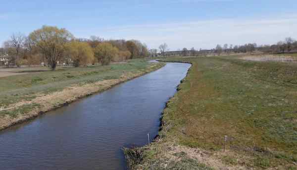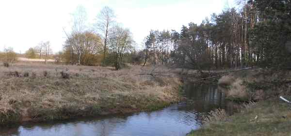 Kilka kilometrów dalej wody Neru zasila Dobrzynka. Rzeka napędzała przemysł włókienniczy Pabianic i przyczyniła się do rozwoju tego miasta. Jej źródła znajdują się na południowy wschód od Tuszyna we wsi Górki Duże [czyli kilkanaście km dalej niż pisałem błędnie w relacji z pierwszej wycieczki]. Pierwszy raz przezroczystą wodę, w tej zatruwanej przez pabianicki przemysł rzece zobaczyłem pod koniec wyjątkowo długiego świątecznego weekandu. Teraz widok piaszczystego dna jest już normą.