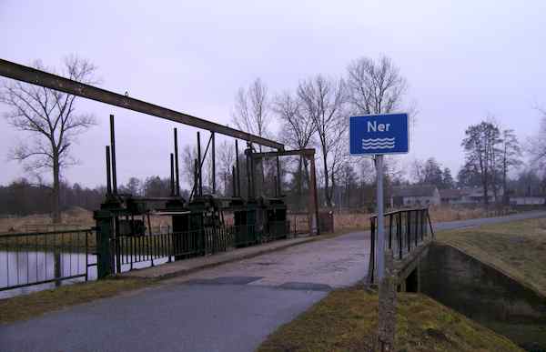 Po ponad 20 km objeździe wracam nad Ner. Robię z mostu kilka fotek i zdezorientowany zatrzymuję się kilka kilometrów dalej. Gdzie jest ślad trasy? Nie ma rady trzeba naprawić błąd i wrócić na trasę wzdłuż rzeki. W zupelnie nieoczekiwanym miejscu przy bocznej drodze obok mostu, mijam 3 dzisiejszego dnia radiowóz. Wcześniej czujnie naciągam buffa aż na nos.