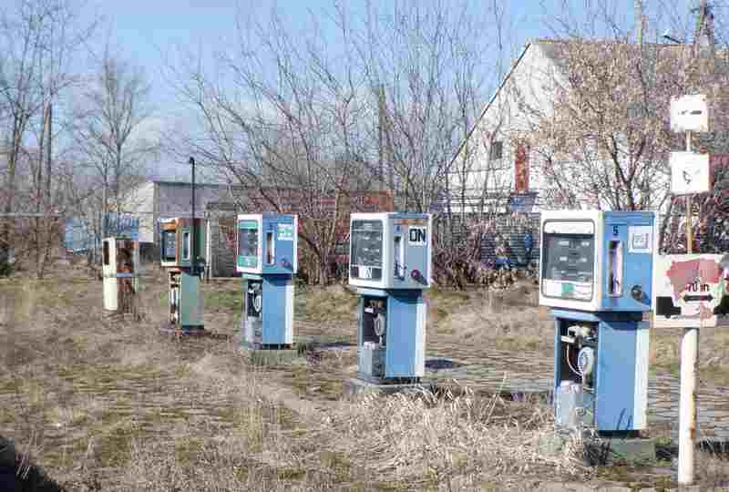 Błotnistš ścieżką jadę w kierunku cywilizacji. Mijam duże, opuszczone gospodarstwo rolne. Jest Sobota. Asfaltowa droga. Nieczynna stacja paliw.