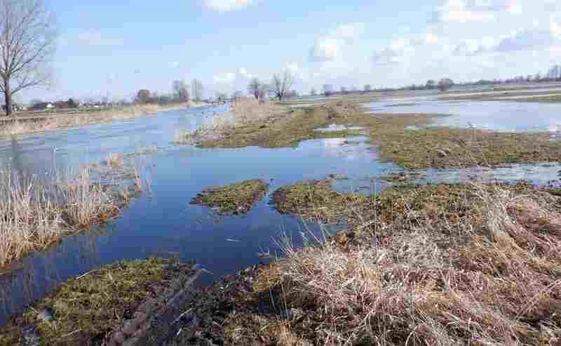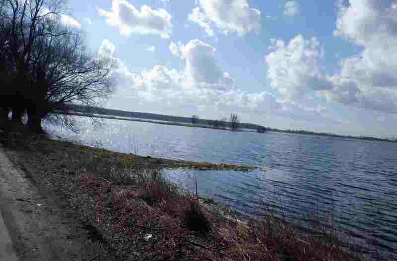 Od ujścia Moszczenicy dzieli mnie ok.10 km. Kilkaset metrów z boku widzę szeroką dolinę a na łąkach wielkie rozlewiska rzeki Bzury. Widok mocno zniechęcający. Przez dłuższy czas targają mną wątpliwości ale w końcu trzymam się pierwotnego planu.
