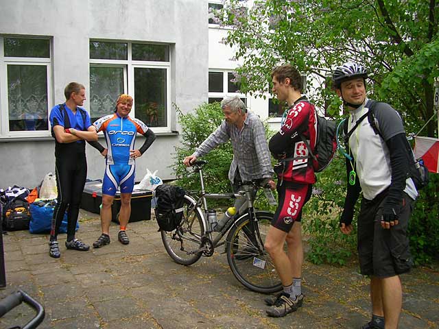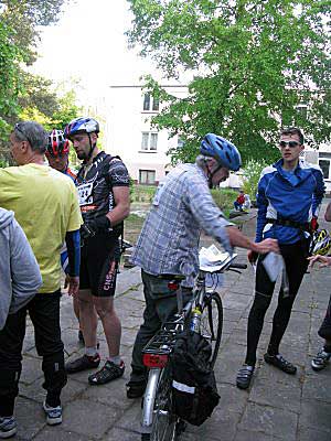 Podróż pociągiem do Warszawy, a później do Tłuszcza. Tu spotykam pozostałą łódzką ekipę: Piotrka, Pawła i Tomka, którzy z Łodzi przyjechali innym pociągiem. Chwila rozmowy, oni przesiadają się na KM ja dojadę do bazy rowerem. Chociaż na trasie mam drobne kłopoty orientacyjne, w Łochowie dość nieoczekiwanie na skraju lasu trafiam na szkolne budynki i dwóch rowerzystów. Bingo, jestem na miejscu. Jeszcze tylko poszukiwanie bocznego wejścia i melduję się w bazie rajdu w Zespole Szkół Ponadgimanazjalnych w Łochowie.