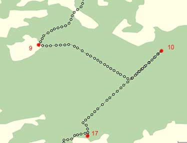 Sprawny przejazd i bezskuteczne szukanie punktu na granicy lasu i nowych nasadzeń, kilkadziesiąt metrów od właściwego miejsca. Opis punktu nie pozwoliłby na popełnienie takiego błędu, niestety takowego nie posiadam. Co ciekawe w tym miejscu poszukiwali punktu również inni bikerzy. Dokładniejsze spojrzenie na mapę pozwala wykryć błąd. PK9 - róg polany z wiatą punkt żywieniowy (14:59 - 22 min.).