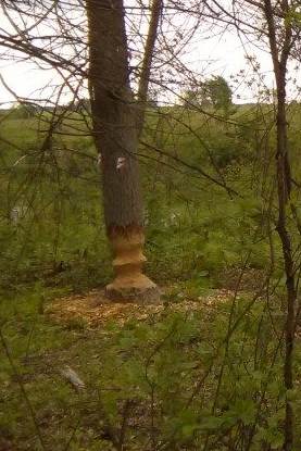 Wjeżdżam na drogę krajową i z sąsiedniej miejscowości zjadę do położonego nad kanałem punktu. Chociaż na leśnej drodze pojawiają się ślady opon asekuruję się kontrolą odległości. Mam dosyć nieodnalezionych i przestrzelonych punktów. Ostatni zakręt drogi, zjeżdżam w dół i widzę najpiękniejszy (najbardziej fotogeniczny punkt). Drzewo zmyślnie nadgryzione przez bobra z wyraźnym zacięciem artystycznym. PK80 (2) - koniec drogi w kanale, obgryzione drzewo (10:58:39, 36:11, 119 km).