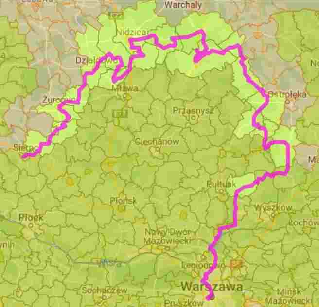 Powtórka lipcowej trasy. Kierunek przeciwny. Tym razem zaczepiłem również o gminy warmińsko-mazurskie. 440 km i 21 zaliczonych gmin pozwoliło zwiększyć stan posiadania do 80%.