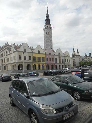 14:27-15:06 Głubczyce. Środek dnia, czyli czas na jakiś gorący posiłek. Tubylcy kierują nads do znajdującego się na rynku baru. Z obszernego menu wybieramy odpowiadające nam dania. W odpowiedzi słyszymy mało uprzejme NIE MA. Pani za ladą jest wyraźnie niezadowolona i zniecierpliwiona tym, że coś od niej chcemy. Odpowiada mało i niechętnie. Marecki nie pamięta tych czasów ale dla mnie to powrót do czasów młodości. Ten bar a raczej jego obsługa wywodzi się wprost z czasów PRL-u. To dziwne bo młody wiek bufetowej nie wskazuje na doświadczenia z tego okresu. Po dłuższych pertraktacjach, gdzie głównym argumentem pani za ladą jest NIE MA udaje nam się skompletować posiłek. Zjadam rosół z makaronem i devolay z bukietem 3 surówek (godzimy się by były tylko 2 rodzaje).