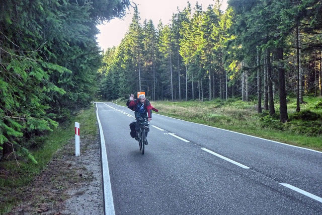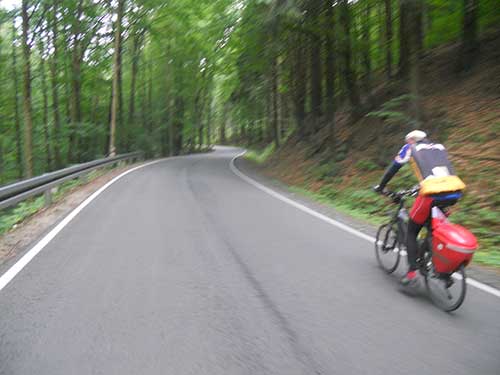 Długi prosty zjazd. Czy można wymarzyć lepszy odcinek trasy. Ze wszystkich sił staram się powstrzymać sen. Na przemian pocieram gałki oczne i potrząsam głową. Zwykle i to tylko na chwilę pomaga. Jednak są chwile gdy oczy zamykają się na dobre. Po sekundach z lekkim przerażeniem budzę się i widzę że jadę dalej. Raz budzę się łapiąc równowagę przy pomocy opuszczonej na asfalt nogi - przecież przed chwilą byłem wpięty w pedały. Metody stosowanej podczas BB Touru czyli głośnego śpiewu nie odważę się zastosować. Wtedy wjeżdżałem do Rzeszowa w towarzystwie TIR-ów, teraz jestem w środku spokojnego lasu. Próbuje bezskutecznie dogonić i zatrzymać jadącego z przodu Mareckiego.