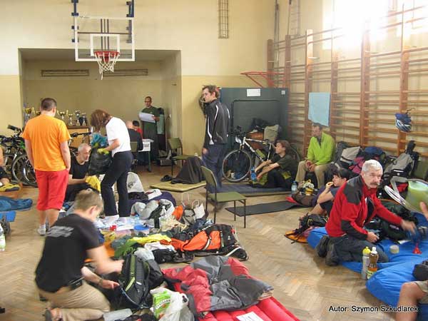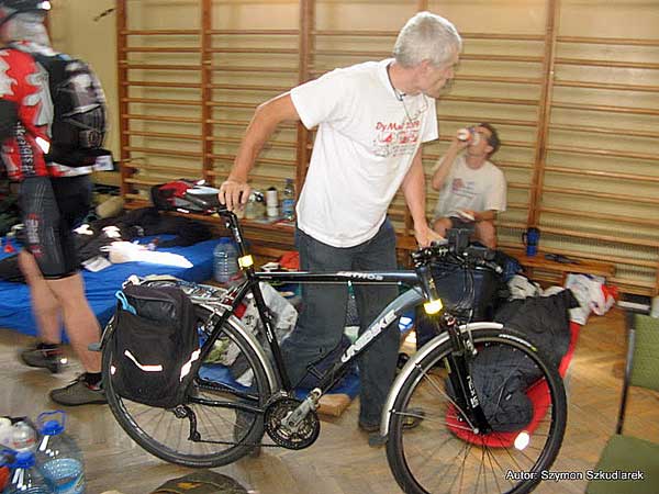 Długie, monotonne asfaltowe odcinki usypiają Marcina. Robimy w jednym z mijanych miasteczek pierwszą kilkuminutową przerwę. środek nocy więc rozbijamy obozowisko na środku chodnika w środku miasta. Mam czas by przeżuć zabraną ze sobą kanapkę, spojrzeć spokojnie na mapę i chwilę odsapnąć. Marcin wypija kupiony wcześniej napój pobudzający. Po chwili kryzys mija na tyle by ponownie wsiadać na rower. Sytuacja powtórzy się dopiero po kilku godzinach. Wbrew obawom podczas tej imprezy ja nie mam takich problemów.