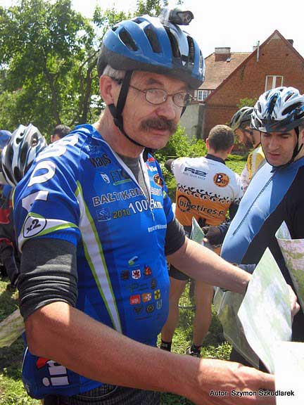 Przy przejeździe przez Jastrowie mój licznik wskazuje 150 km. Na przejechanie tego dystansu wystarczyło niecałe 8 i pół godziny. Kolejne kilkanaście kilometrów i będziemy mieli zaliczone połowę z 20 punktów kontrolnych. Lekko piaszczysta droga (zmoczone deszczami piachy ułatwiają jazdę) i zatrzymujemy się na jedynym w swoim rodzaju skrzyżowaniu leśnych dróg i przecinek. Nie wierzę własnym oczom, przecinki mnożą mi się w oczach, ich liczenie powtarzam kilkakrotnie. Stąd można pojechać w 9 (słownie dziewięć) stron świata. Chwila zastanowienia, w wyborze odpowiedniej drogi pomaga kompas i mapa (chociaż na niej widnieje tylko 7 kresek). Szybko wyjeżdżamy z lasu na rozmokłą drogę między łąkami. Wody jest coraz więcej, pomimo widocznych śladów kół wracamy - jesteśmy zbyt daleko. Mijamy dziewczynę szukającą w trawie kompasu. Kompas był mały (bardzo mały) bo pozostał chyba nie odnaleziony a może to nie było to miejsce.