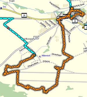 Jak się okaże kartę prologu sprawdziłem niezbyt dokładnie. Od spotkanych na dalszej trasie zawodników dowiem się, że nie zaliczyłem jednego z rozmieszczonych w mieście punktów. Ten błąd nie jest szczególnie dotkliwy (5 pkt). Ważniejsze jest to, że w pośpiechu nie zauważam, że tuż za lotniskiem znajduje się PK5 z trasy głównej. Ten punkt zaliczyli na początku niemal wszyscy startujący zawodnicy.