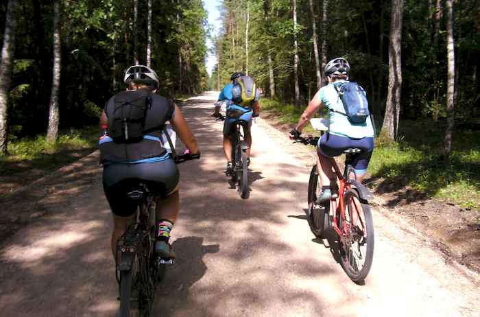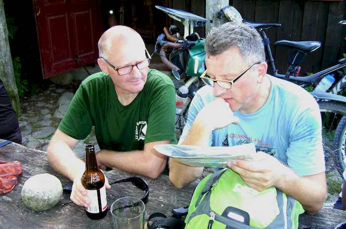 Wczesna pobudka i wyjazd z Łodzi. Na miejscu jesteśmy w godzinach wczesno popołudniowych. Czeka tu na nas zamówiony telefonicznie obiad. Kilka osób świętuje urodziny Organizatora już od wczorajszego wieczora. Ogarniam nocleg, wymieniam uszkodzoną w czasie transportu dętkę. Chwilę waham się gdy Bronek proponuje przejażdżkę po okolicy. Właściwie, dlaczego nie. Przede mną ok. 40 km jazdy i przedsmak tego co czeka mnie już jutrzejszego dnia. Strome podjazdy i szalone szutrowe zjazdy. Na jednym z zakrętów z trudem unikam zjazdu w krzaki. Mijamy miejsca (podobno 4), w których będą znajdowały się punkty kontrolne. Postój przy barze z piwem. Kąpiel w jeziorze Wiżajny. Kolejny sklep. Ktoś zajada się smażonymi rybami. Ja wybieram przepyszne domowe pączki.