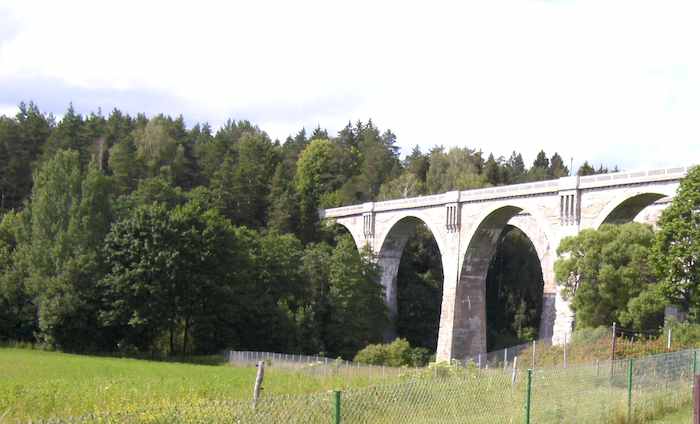 W zamian jedziemy dość okrężną drogą (innej nie ma) w kierunku innego nieco mniej imponującego wiaduktu na tej samej linii kolejowej. T35 (wiadukty - biało-czerwona tablica - wyrazy) - 15:53 (56,5).
