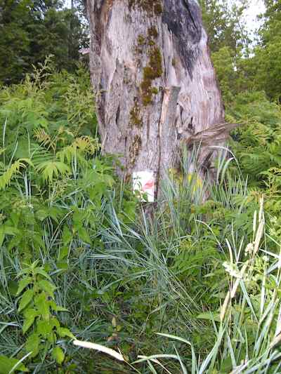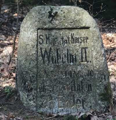 W jaki sposób odnaleźć obelisk znajdujący się gdzieś w środku lasu? Chociaż punkt nie jest nazwany "po imieniu" to znający te rejony Ewa i Jarek wiedzą, że chodzi o głaz upamiętniający polowania cesarza Wilhelma II na terenach puszczy Romnickiej. Turystyczny drogowskaz obok szutrowej leśnej drogi wskazuje ścieżkę prowadzącą do obelisku. Niezbyt dobrze przejezdna, rzadko eksploatowana przez turystów ścieżka kończy się na skraju lasu. Kiedy szykujemy się do przeszukania niewielkiego pagórka kątem oka dostrzegam głaz umiejscowiony na łące. To tzw. głaz "dwustronny". T18 (obelisk - rok) - 16:36 (68,1). Rok 1904 (kod JDZC).