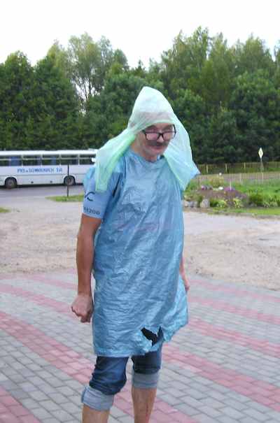 Kolejny "odkryty" punkt. Przed nami miejsce i obiekt obok którego przejeżdżałem wczorajszego popołudnia. Molenna - budowla staroobrzędowców przypominająca tradycyjną cerkiew. Wokół drewnianego obiektu nie odnajdujemy interesującej nas informacji. Znajduje się na tablicy po przeciwnej stronie drogi. Pierwsze litery cyfr stanowią kod potwierdzający obecność na punkcie. Przez chwilę próbują nas zmoczyć pojedyncze krople deszczu. Jesteśmy w szczęśliwej sytuacji - mapy są wodoodporne. T52 (molenna - tablica nr 4 - sobór moskiewski rok) - 10:50 (9,7 km).