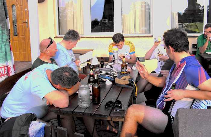 Wracamy jadąc przez zupełnie odkryte bezleśne obszary. Głównym przeciwnikiem będzie dla nas silny przeciwny wiatr i duże odległosci pomiędzy punktami. Mnie wiatr szczególnie mocno nie przeszkadza. Na asfaltach staram się utrzymać optymalną szybkość, tak by grupka dojechala w całości do kolejnego punktu.