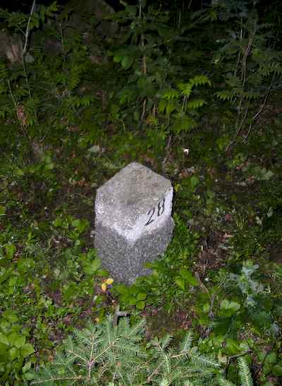 Chyba nawet przewodnik zauważył, że zgubiliśmy się. Wspólnymi siłami odnajdujemy na mapie miejsce (drogę) na której się znajdujemy i kierunek w którym powinniśmy jechać by odnaleźć punkt. Pomimo ciemności w oddali widać ciemny pas lasu. Mamy las, mamy jakieś marne pozostałości po istniejącym cmentarzu. Gdzie jest słupek działowy? To prawie jak szukanie igły w stogu siana. Szczególnie, że nikt nie zwrócił uwagi, że trzeba przeszukać fragment lasu odległy ponad 100 metrów od drogi, którą tu dotarliśmy. Po kilkunastu minutach szczęście dopisuje Ewie. Po fakcie to w świetle czołówki widać nawet ścieżkę wydeptaną przez naszych poprzedników. T47 (słupek oddziałowy) - 22:05 (127).