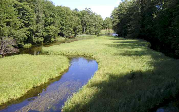 Kolejny odcinek asfaltowej drogi prowadzi do następnego rezerwatu nad tą samą rzeką. Przed skrętem w jedną z polnych dróg powstrzymują mnie jadący z tyłu zawodnicy. Punkt znajduje się za niewielką rzeczką, którą zakryłem zaznaczając położenie punktu na mapie. Wzrok też już nie tak dobry. Chociaż tego nie ma na mapie dojazd do rezerwatu prowadzi od innej strony. Niewielki parking, tablice informacyjne. Droga przez pola. Porozrzucane po polu kamole (rezerwat "głazowisko"). Tablica z nazwą ryby z położonej niżej rzeki. T41 (tablica rezerwat - nazwa ryby z ryciny - wyrazy) - 11:48 (20,9).