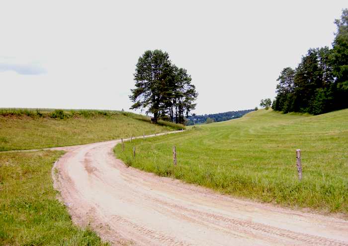 Długa szutrowa droga. Odmierzona odległości i obserwacja mijanego terenu pozwala bezbłędnie namierzyć właściwą odchodzącą w bok drogę. Na skraju niewielkiego lasku odnajdujemy drzewo z lampionem. PK21 (skraj pola na górce - kupa kamieni) - 13:24 (35,1).