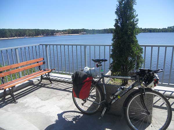 No cóż, Roztocze jest tylko jedno i dość szybko się kończy. Teraz będę mógł poznać prawdziwe oblicze greenvelowego szlaku na Lubelszczyźnie. Elegancka droga rowerowa ze Zwierzyńca nieoczekiwanie kończy się na przedmieściach Szczebrzeszyna. Skręcam w pola i w dziwny sposób znajduję się po przeciwnej stronie tej miejscowości. W okolicach zalewu Nielisz wjeżdżam na nietkniętą ludzką ręką ani funduszami unijnymi gruntową polną drogę. Nie powiem, żebym trafił na piaszczystą pustynię jednak piach mocno daje się we znaki.