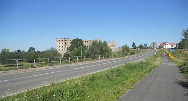 Docieram do położonego na przeciwległym brzegu Radomyśla i zaczyna się prawdziwa jazda. Wzdłuż doliny Sanu zbudowany został długi na kilkadziesiąt kilometrów odcinek asfaltowych ścieżek rowerowych. Początek nie jest jeszcze tak różowy. Czuję się jak w jakiejś grze. Nie jestem pewien, z której strony drogi nagle pojawi się ścieżka i jak szybko równie nagle się skończy lub przeskoczy na drugą stronę jezdni. Później proste odcinki są jakby dłuższe, a w mijanych miejscowościach można nawet jechać po obu stronach drogi. Może pozytywne wrażenie potęguje fakt, że w nocy ruch jest niewielki a przejazd przez chodnikościeżki oraz z jednej na drugą stronę drogi bezkolizyjny.