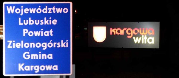 Powoli zapadają ciemności. Wiatr na którego przychylność liczyłem w drugiej części wycieczki przestaje być odczuwalny. NIebo pokrywa warstwa niedeszczowych chmur. Pomimo, że temperatura nieco spada jadąc jestem w stanie zachować komfort cieplny. MIjam kolejne bardziej znane gminy i miejscowości: Czarnków, Szamotuły. Zaliczam mniej znane gminy. Wreszcie kilka minut po godz. 3 osiągam cel wycieczki, wysuniętą najbardziej na poludnie gminę Kargowa. Stąd już tylko rzut beretem do Zielonej Góry.